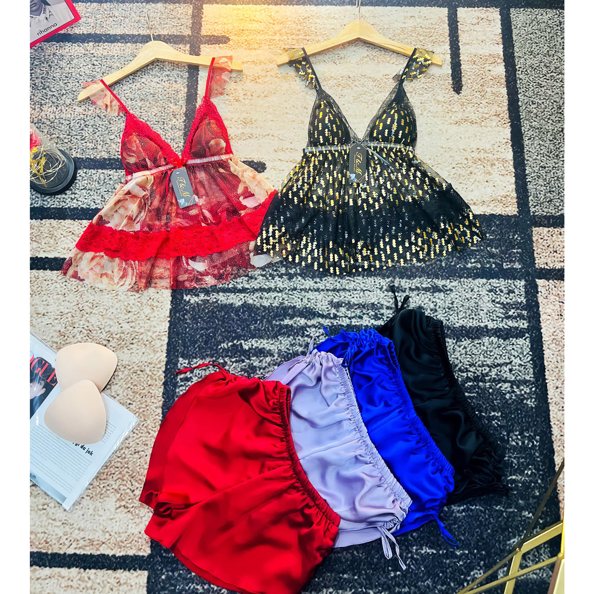 Chất: Áo lưới mềm - Quần satin.