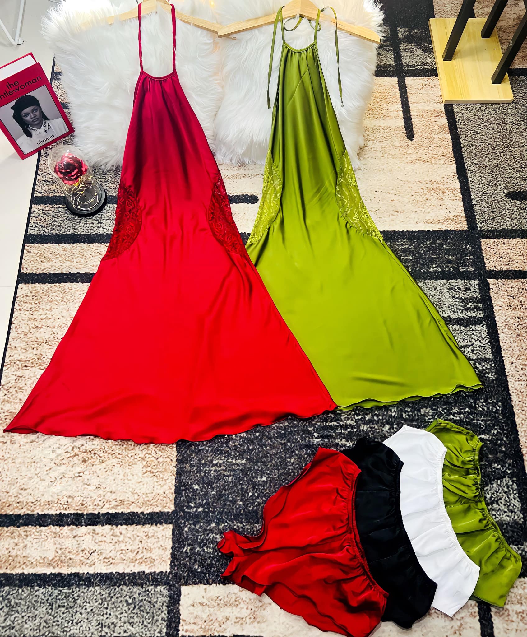 Bộ đồ ngủ chất liệu Lụa Latin tơ tằm loại 1 bao mịm mềm, maxi yếm kèm quần được thiết kế riêng bởi Mi Sleepwear chất lượng và giá rẻ
