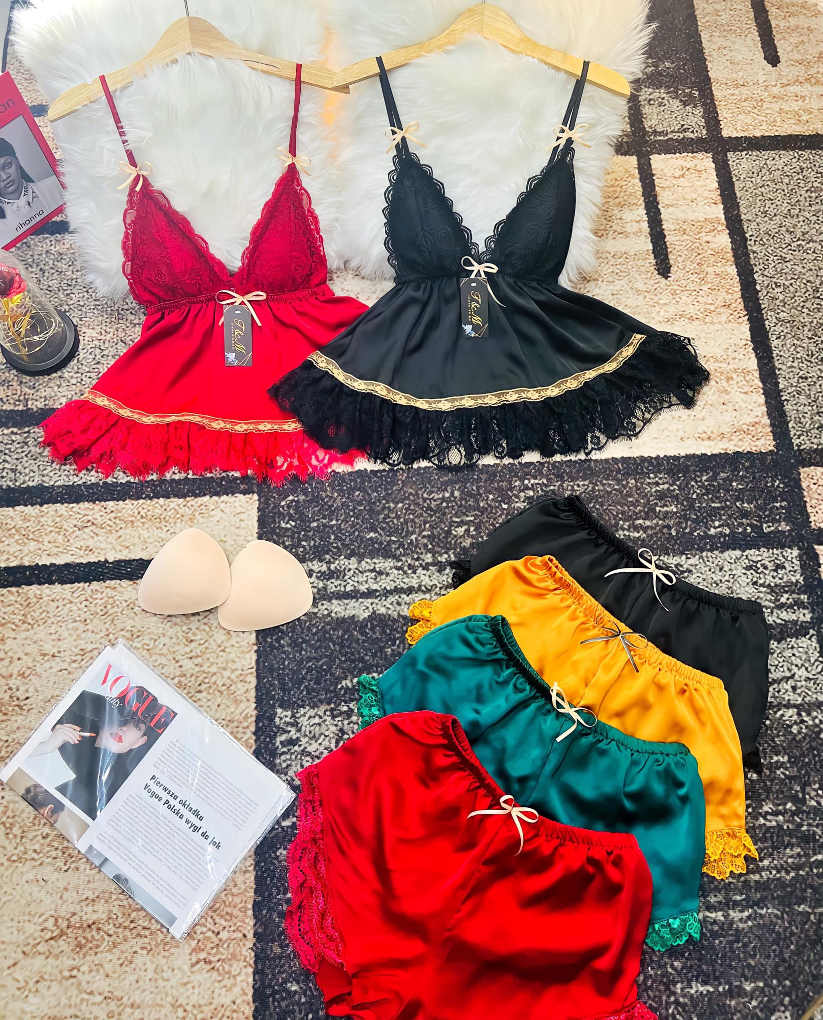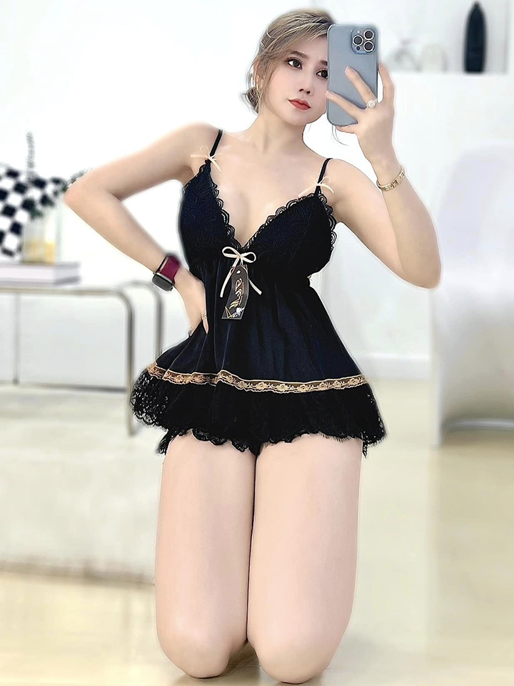 Bộ đồ ngủ chất liệu lụa Satin loại 1 ren mi cao cấp, ren thun, có mút rời tăng kim loại được thiết kế riêng bởi Mi Sleepwear chất lượng và giá rẻ