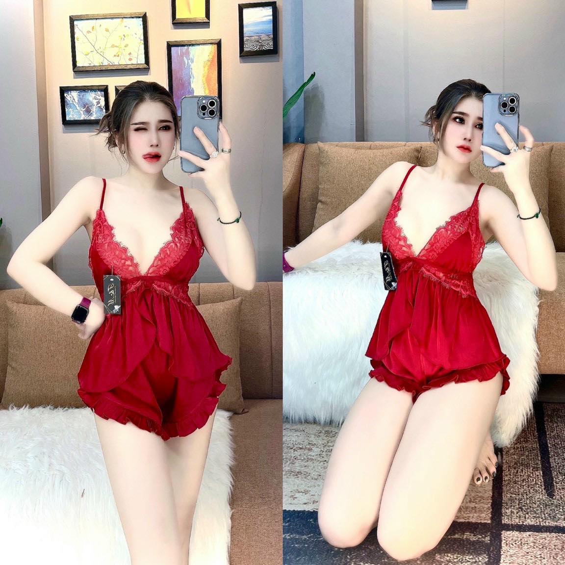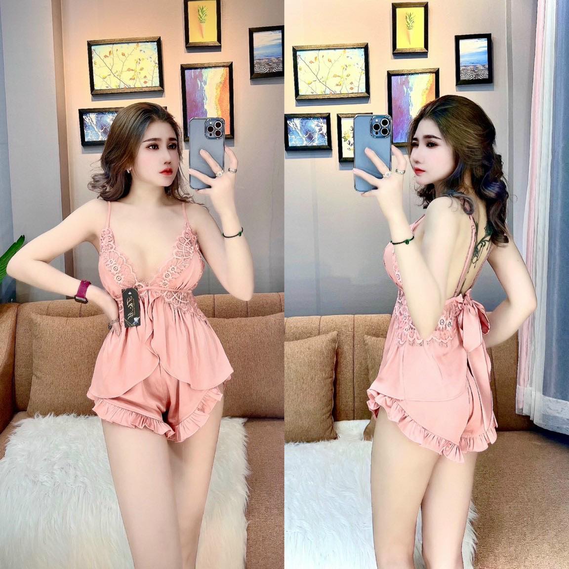 Set đồ ngủ lụa tơ tằm latin loai 1 ren mi cao cấp kèm tăng kim loại được thiết kế bởi Mi Sleepwear cực kì chất lượng